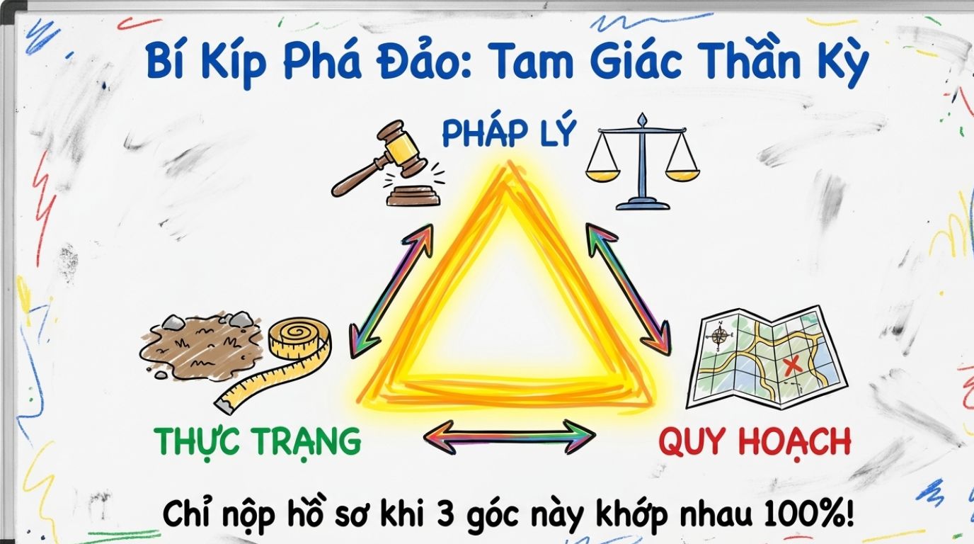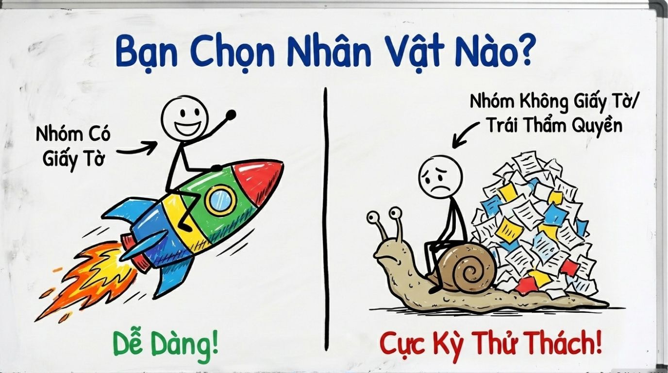 Điều cần nhớ là nếu thửa đất hoặc nhà, công trình trên đất có lịch sử pháp lý phức tạp, nhất là trường hợp từng tự ý chuyển mục đích sử dụng đất, có xử phạt, hoặc mua bán bằng giấy tờ chưa hoàn tất sang tên, thì hồ sơ thường không thể chỉ nộp “đơn + căn cước + sổ hộ khẩu” như nhiều hướng dẫn truyền miệng.